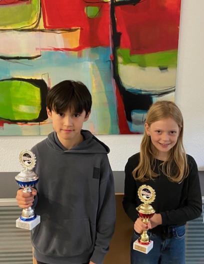 Die gesamte Schulgemeinschaft ist stolz auf Amalia Stapp, 4b, und Valentin Schwanitz, 4a. Unsere beiden Sieger der Mathe-Meisterschaft vom November 23 waren beim City-Lauf in gleicher Weise erfolgreich. Valentin Schwanitz erreichte im Lauf M 10 mit 6:54 Minuten den ersten Platz, Amalia Stapp erlief sich mit 7:46 Minuten den zweiten Platz im Lauf W 10.